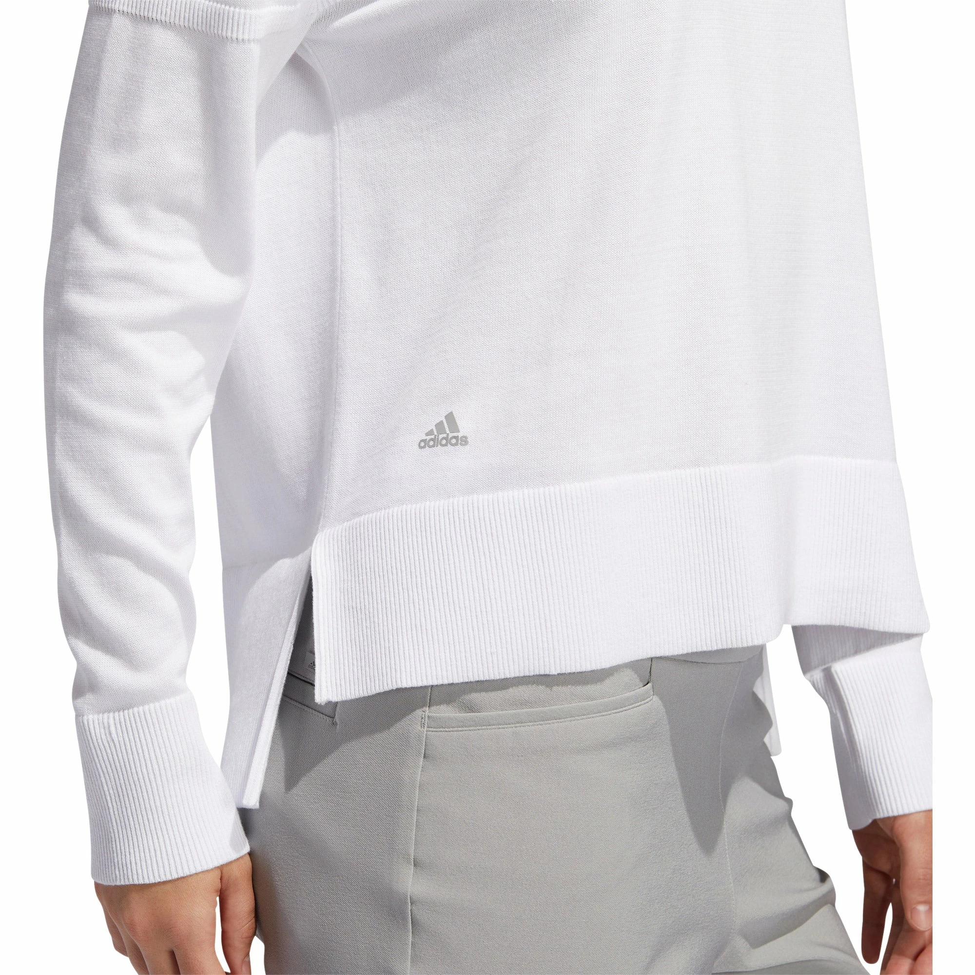 Get clean, classic styling for cool rounds of golf with the Adidas 3-Stripes Golf Sweater. This sweater supports natural movement and comfort thanks to its soft knit cotton so that you can swing without restriction. The tonal ribbed 3-stripes run across the chest and one sleeve to provide some subtle styling for your next round.