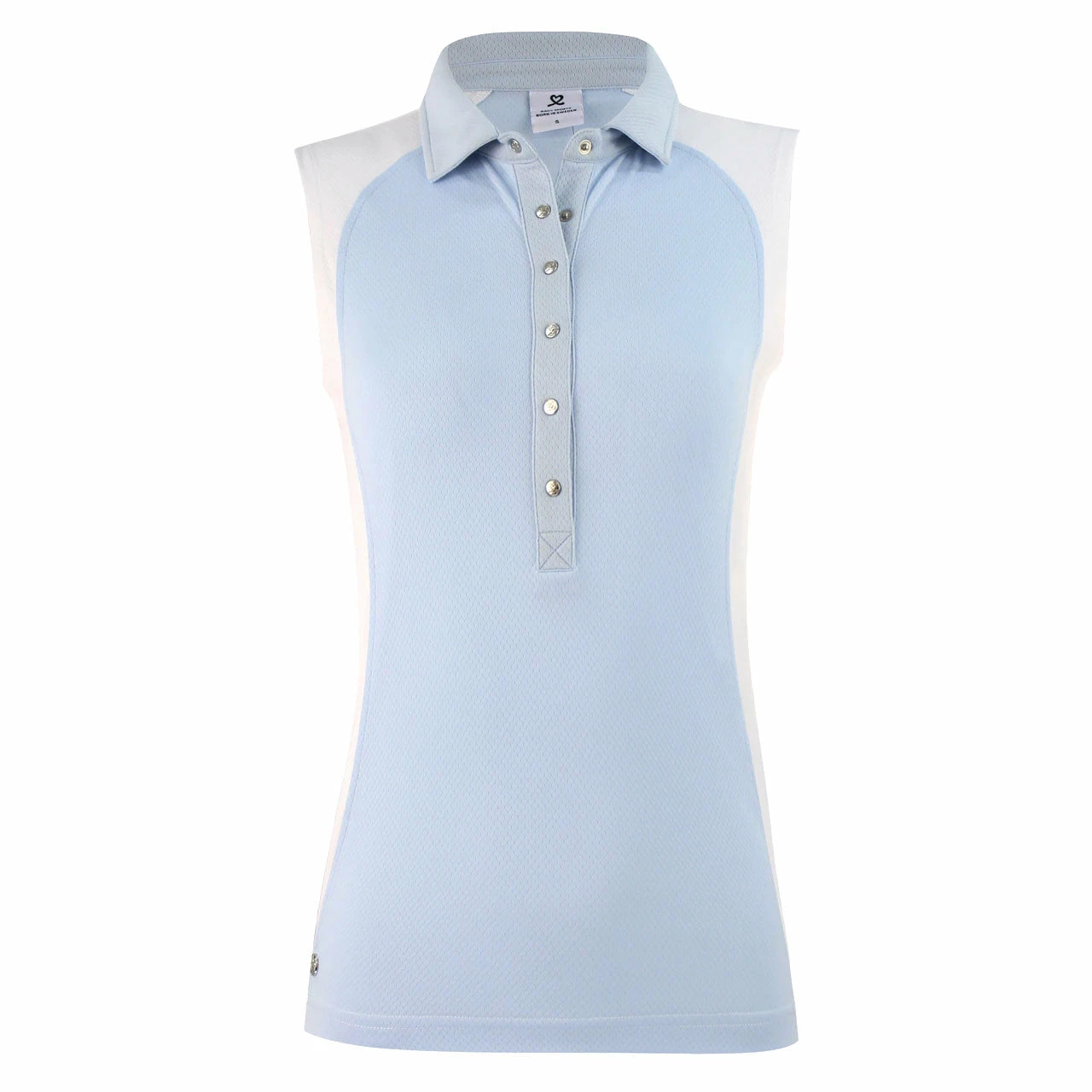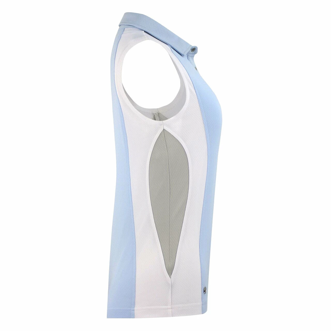 The Daily Sports Zenia Sleeveless Golf Polo will have you looking and feeling your best on and off the course. It features a polo collar, snap button placket, straight hem, regular fit, color blocking trim around shoulders and sides, and technical stretch. Quick dry fabric will keep you dry, cool, and comfortable while high tech breathable material will give you excellent ventilation and rapid moisture absorption.
