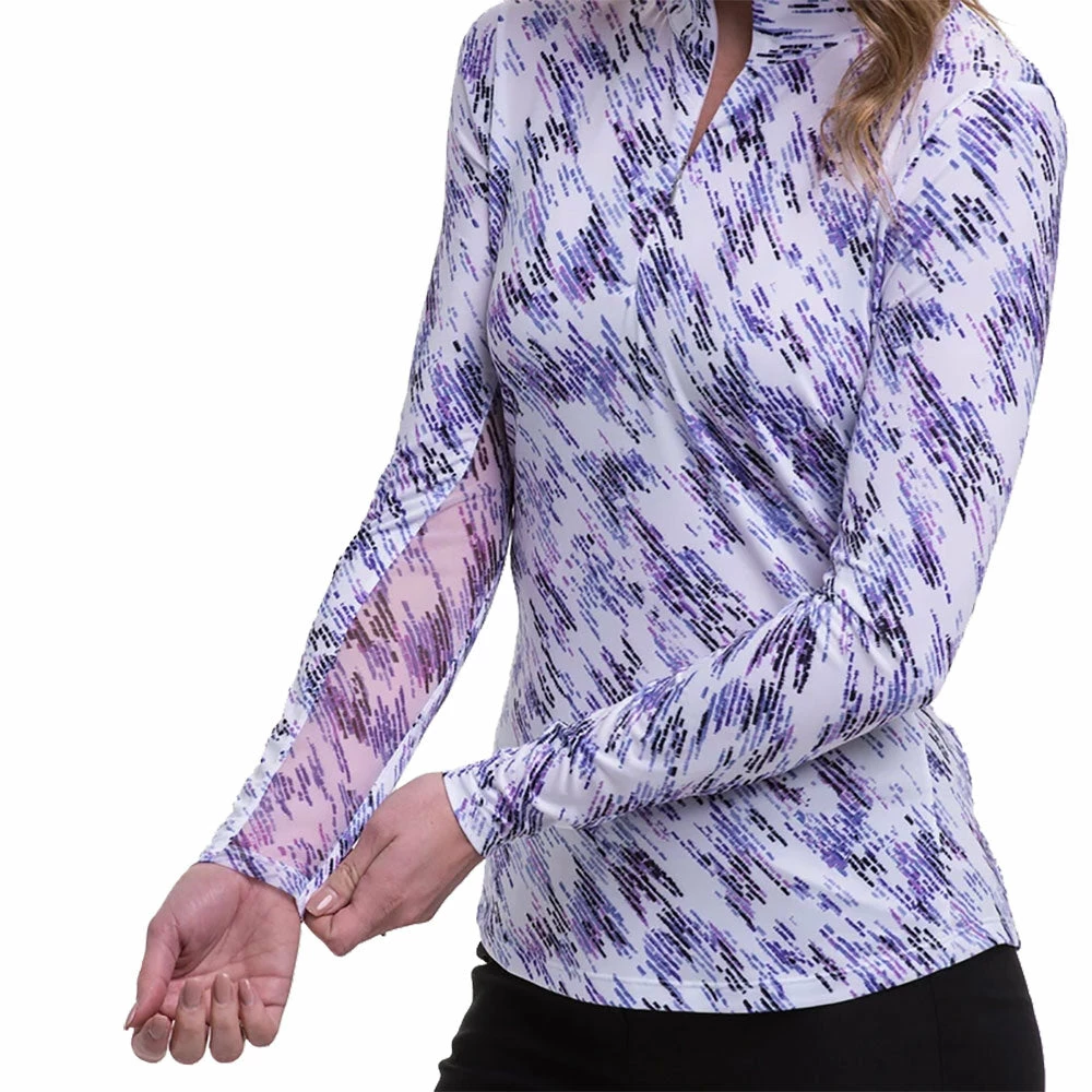 Stay cool and dry out on the course with the EP New York Texture Print Mock Womens Golf 1/4 Zip. This 1/4 zip features nano technology crystal cooling and moisture wicking fabric to keep you cool, dry and comfortable all day long. Printed mesh under arm insets provide additional cooling by allowing air to flow through freely. UV 50+ solar tech technology will keep you protected from the sun’s harmful rays so you can focus on your round.