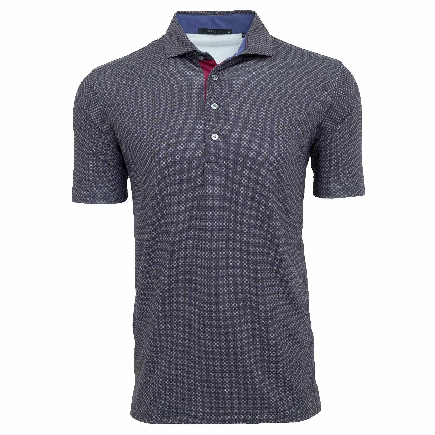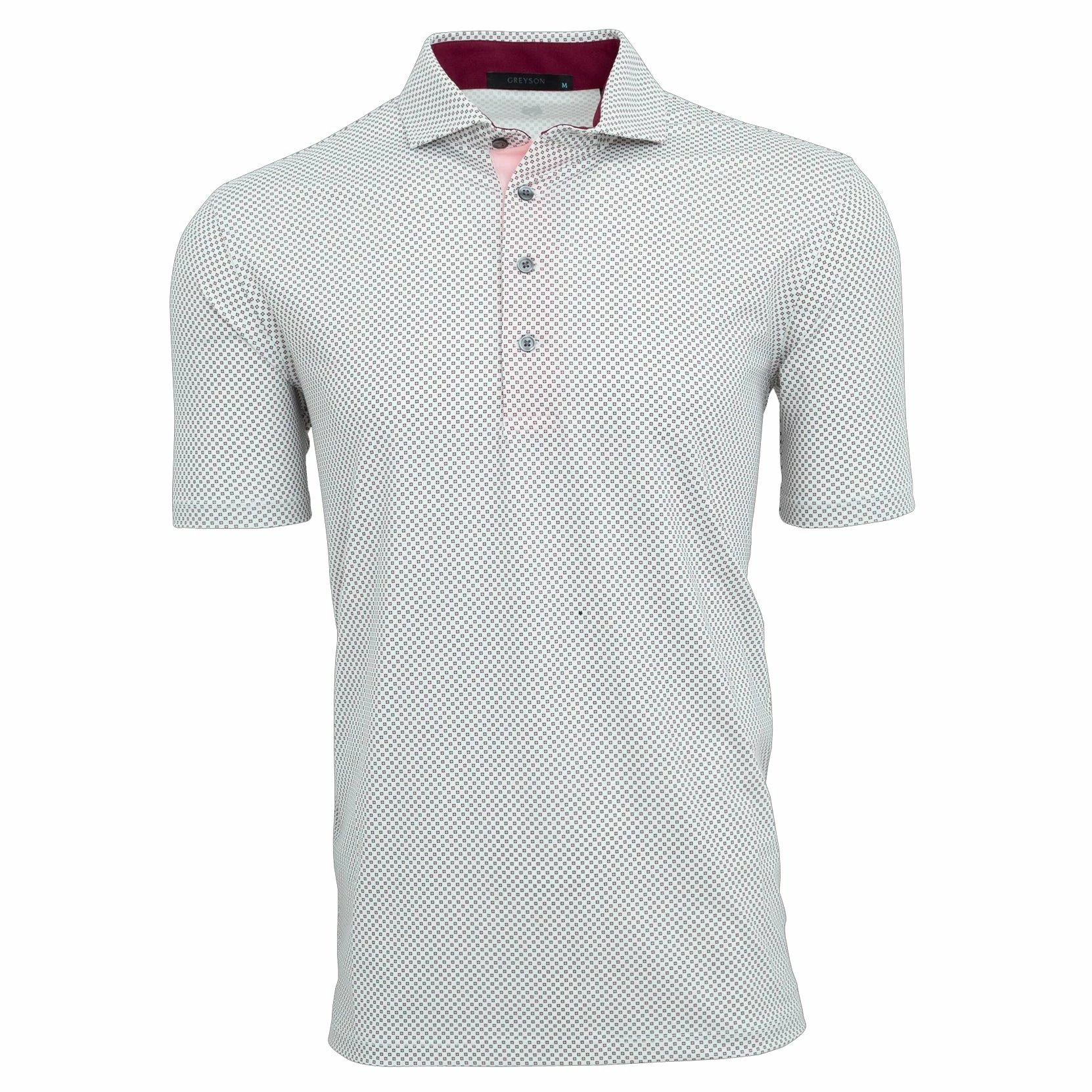 Designed with plenty of stretch and breathability comes the Greyson Dream Weaver Polo. The technical fabric is antimicrobial and moisture wicking to keep you dry and comfortable and smelling fresh during even the most heated round of golf. There is a four button placket with a classic spread collar and all-over Greyson print for a stylish look and UVA and UVB sun protection will keep you safe from the harmful UV rays of the sun.