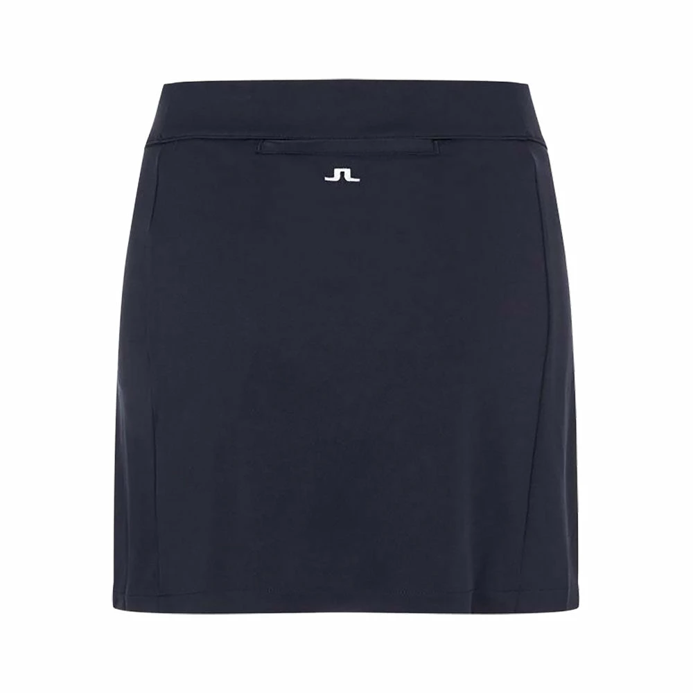 The J. Lindeberg Amelie Mid 16.5in Golf Skort is constructed with TX Jersey that gives you the ultimate softness and stretchability while out on the course. The skort will never cling to your skin or feel damp, giving you the utmost comfort. It features attached inner shorts, one back pocket with a zipper, and embroidered JL logo at back.