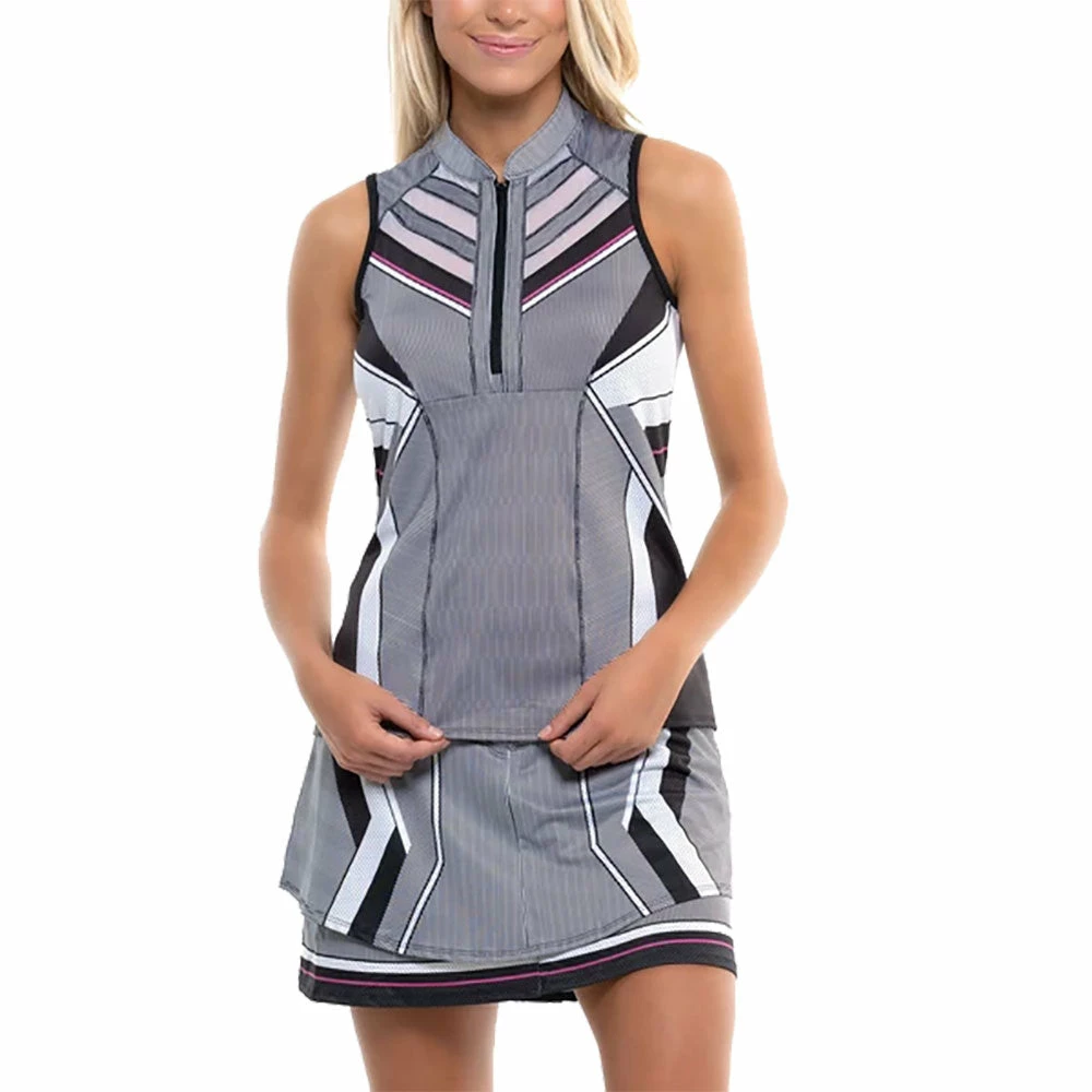 Look and feel you best out on the course with the Lucky in Love Kinetic Energy Zip Womens Golf Tank Top. This semi-fitted top features a quarter zip, mesh inserts along the collar, and all over engineer printed stripes. Moisture wicking and quick drying material will keep you cool and comfortable all day long.