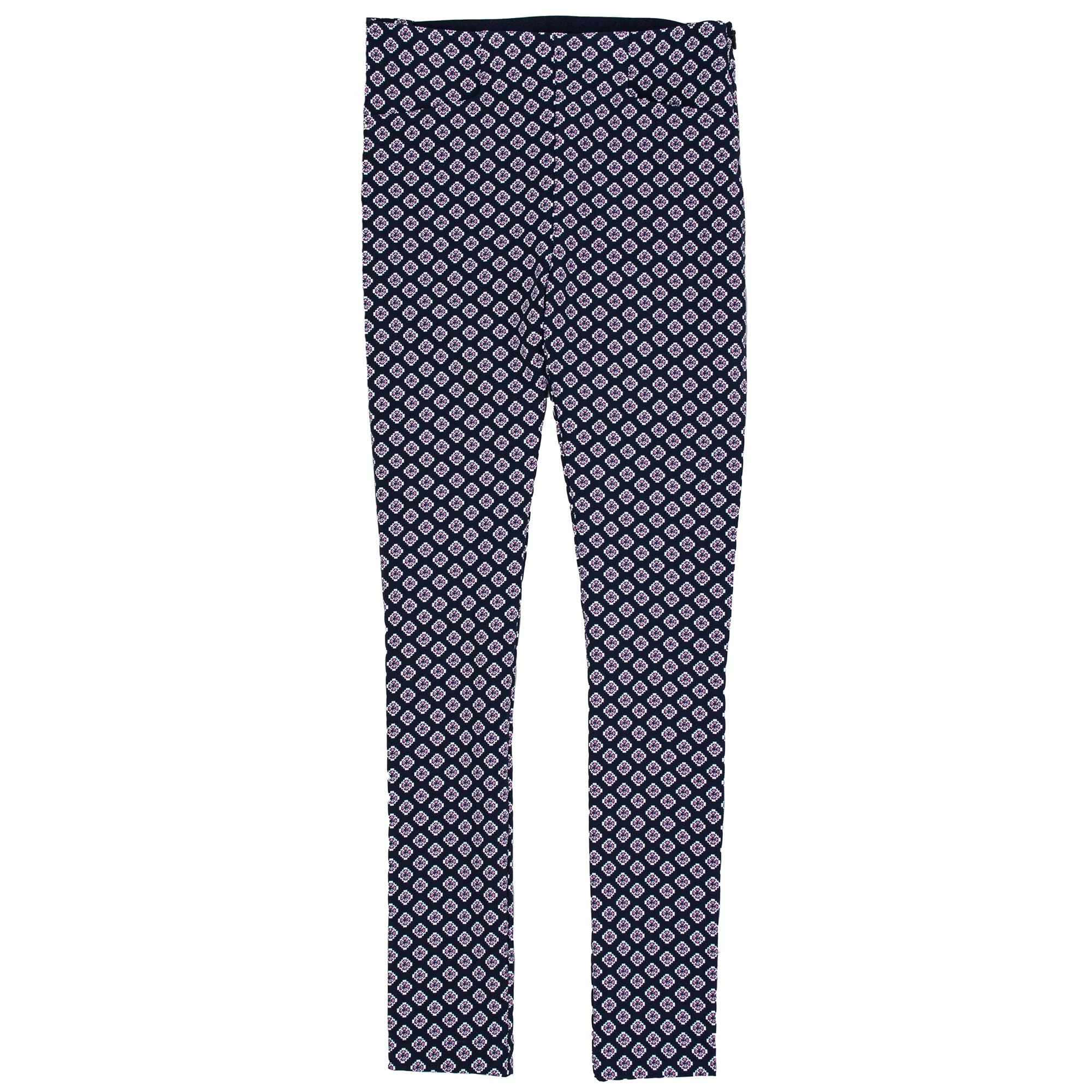 The RLX Print Stretch Womens Golf Pantin Navy and Rose, is designed with a chic Provencal-inspired print. These golf pants are made from a refined stretch fabric for superior comfort and mobility during all-day play, and feature a side zipper, two front and two back pockets, and an elastic back waistband.