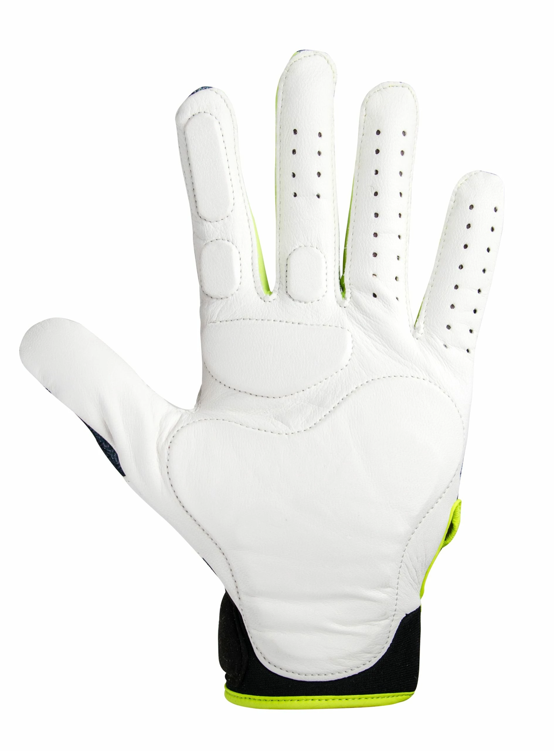 Lightweight and thin palm and finger pads absorb and spread shock over a larger surface area, limiting the amount of nerve damage in the hand after repeated hard balls.