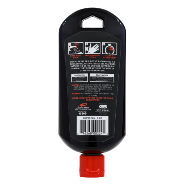 Now in a larger 6 oz. bottle! Lizard Skins Grip Boost® batting gel is a quick drying, alcohol-based gel that gives batters the extra grip and superior bat control they need without the mess of other grip enhancers. It works by applying a thin tacky polymer layer to the palm of the glove. It’s clear, easy to clean and doesn’t leave any residue. Performance is not dependent on temperature and the tackiness can be reactivated by moisture.